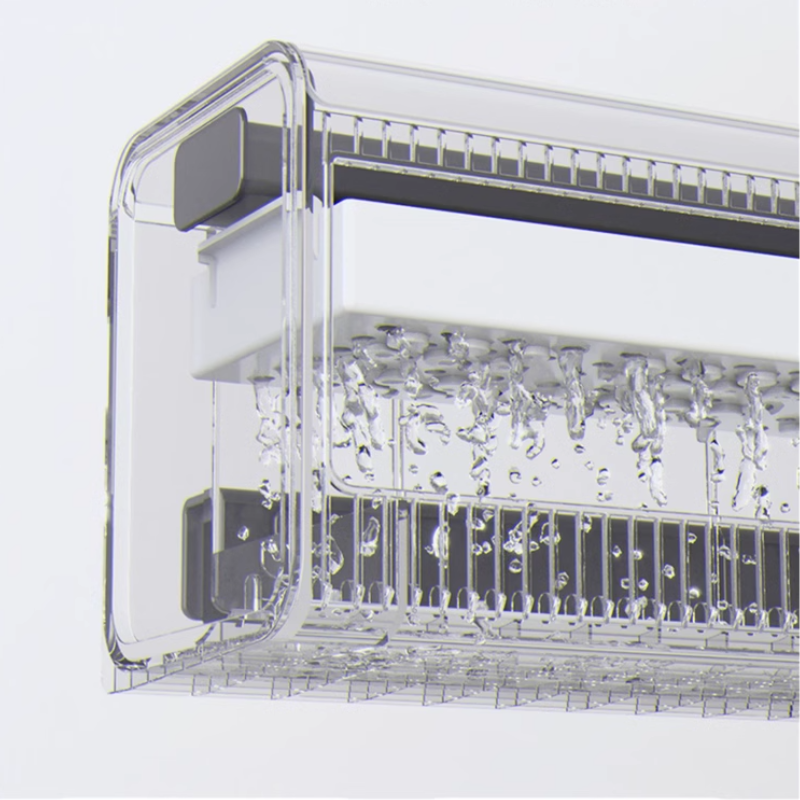 Drips water off the tank wall to minimize noise and splash, maintaining a peaceful environment.